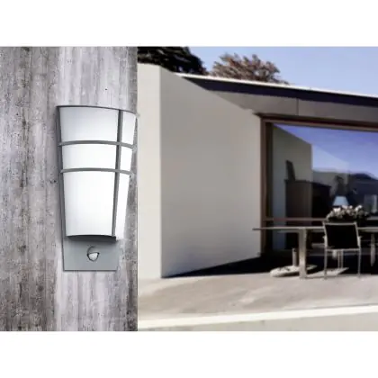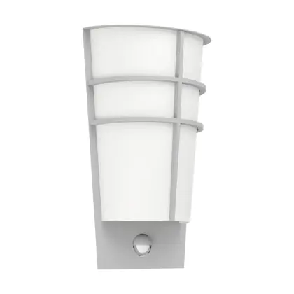 Eglo Applique Murale Breganzo 1 Acier Argent 2W 230lm - 830 Blanc Chaud | IP44 - Détecteur de Mouvement et de Lumière