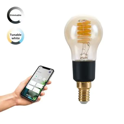 Eglo Connect.Z Smart LED Boule E14 Filament Ambre 4.9W 320lm - 827-865 Variable Blanc | Dimmable - Équivalent 25W est le produit de remplacement parfait pour votre ancienne ampoule de 25W avec un culot E14 grâce à sa technologie LED. Passer à la LED vous offrira de nombreux avantages !