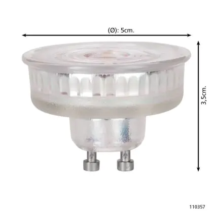 Il existe de nombreuses bonnes raisons de passer aux LED GU10 : plus durable et plus respectueuse de l'environnement que les spots halogènes classiques, mais aussi beaucoup plus économe en énergie. Vous pouvez le voir dans la consommation d'énergie de 4 watts. C'est beaucoup moins que la puissance 57 Watt de son homologue conventionnel.