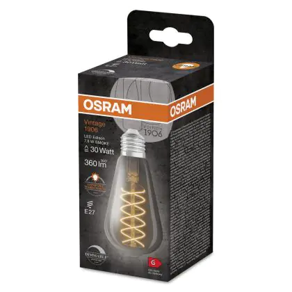 Ledvance Vintage 1906 LED E27 Edison Smoke 7.8W 360lm - 818 Blanc Très Chaud | Dimmable - Équivalent 30W est le produit de remplacement parfait pour votre ancienne ampoule de 30W avec un culot E27 grâce à sa technologie LED. Passer à la LED vous offrira de nombreux avantages !