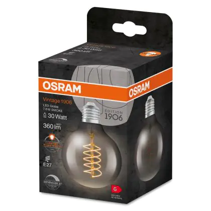 Ledvance Vintage 1906 LED E27 Globe Smoke 7.8W 360lm - 818 Blanc Très Chaud | Dimmable - Équivalent 30W est le produit de remplacement parfait pour votre ancienne ampoule de 30W avec un culot E27 grâce à sa technologie LED. Passer à la LED vous offrira de nombreux avantages !