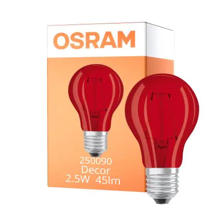 Description Osram LED Star Classic Decor E27 Poire Filament Dépolie 2.5W 45lm - Rouge | Équivalent 7W