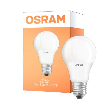 Grâce à la technologie LED moderne, l'ampoule LED E27 Osram 8.5 watts consomme particulièrement peu d'énergie, de sorte que sa puissance est nettement inférieure à celle des lampes à incandescence classiques. Néanmoins, le rendement lumineux, c'est-à-dire la valeur lumineuse, reste le même. Ainsi, il peut avoir une efficacité lumineuse particulièrement élevée de lm/W. Cela a un effet particulièrement positif sur votre facture d'électricité, car avec ce produit, vous avez besoin de beaucoup moins d'énergie pour obtenir la luminosité dont vous avez besoin.