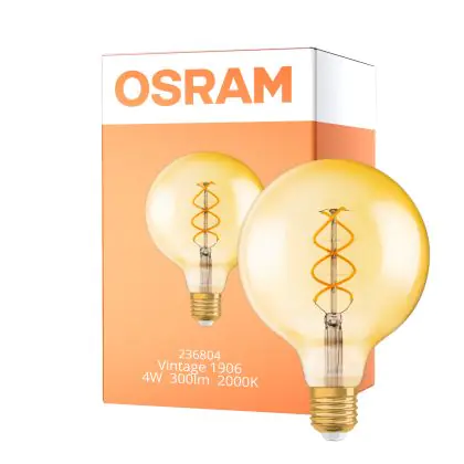 Description Osram Vintage 1906 LED E27 Globe Filament Goud 125mm 4W 300lm - 820 Zeer Warm Wit | Dimbaar - Vervangt 28W