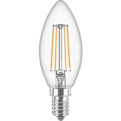 Description Philips Corepro LED Bougie E14 Filament Claire 4.3W 470lm - 827 Blanc Très Chaud | Équivalent 40W