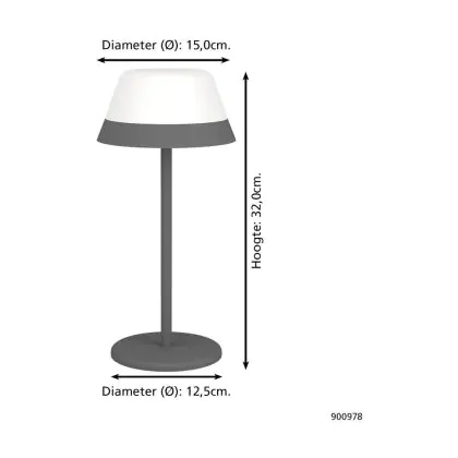 Beschrijving Eglo Tafellamp Meggiano Grijs 1W 170lm - 830 Warm Wit | IP54 - Touch Dimbaar