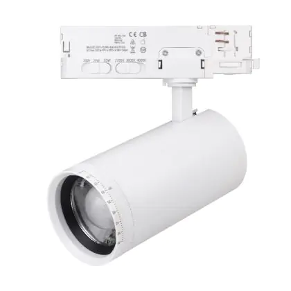 De Noxion 3-Fase Railspot Delta Aluminium Wit 30W 2250lm 15-55D - 927-930-940 CCT | Zoomable is ideaal om te gebruiken in commerciële omgevingen waar de focus op bepaalde producten of objecten wordt gelegd, zoals een kledingwinkel die haar nieuwste kledinglijn in de picture wil zetten of een showroom van een autoverkoper. Door het gebruik van een handig railsysteem heb je de vrijheid om jouw verlichting naar wens af te stemmen. De lichtbron kan immers gemakkelijk na installatie verschoven en/of gedraaid worden om de juiste lichtrichting te realiseren. De 55° gradenbundel maakt de lichtbron vooral geschikt voor accentverlichting.