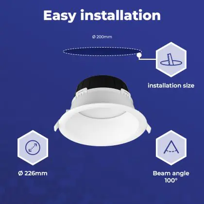 LED downlights kun je vergelijken met een inbouwspot, maar dan met een, over het algemeen, bredere stralingshoek. Downlight armaturen hebben een medium gradenbundel (25 - 40°), die perfect is voor ondersteunende verlichting, of een (zeer) brede gradenbundel (41 - >91°), die gebruikt wordt voor algemene verlichting. Deze 100° LED downlight van kun je in vele werkomgevingen en/of woningen gebruiken.
