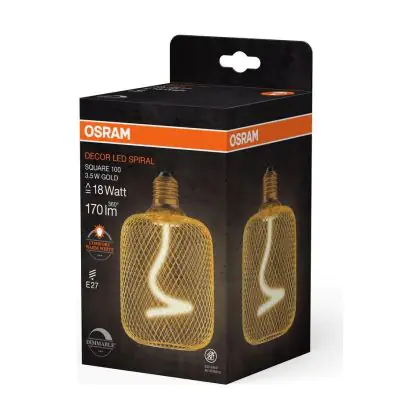 | Fabrikantnaam | DECOR LED SPIRAL FILAMENT SQUARE 100 18 GOLD DIM 3.5W 818 E27 | |