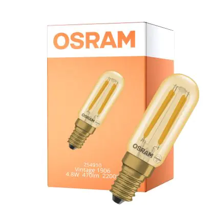 Beschrijving Osram Vintage 1906 LED Special Shapes E14 Tubular Amber 4.8W 470lm - 822 Zeer Warm Wit | Dimbaar - Vervangt 40W