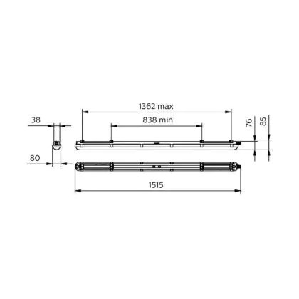 Beschrijving Philips LED Waterdichte Montagebalk CoreLine Kunststof 24W 3400lm - 840 Koel Wit| 150cm - Vervangt 1x58W