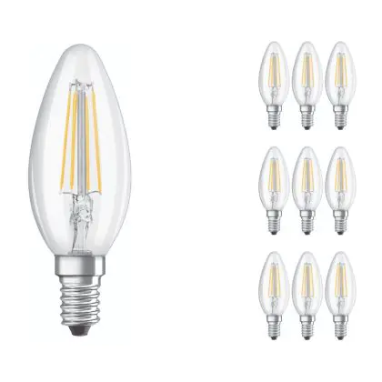 Beschrijving Voordeelpak 10x Osram CLASSIC LED E14 Kaars Filament Helder 4W 470lm - 827 Zeer Warm Wit | Vervangt 40W