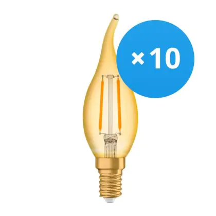 Beschrijving Voordeelpak 10x Osram Vintage 1906 LED E14 Kaars Goud 1.5W 120lm - 824 Zeer Warm Wit | Vervangt 15W