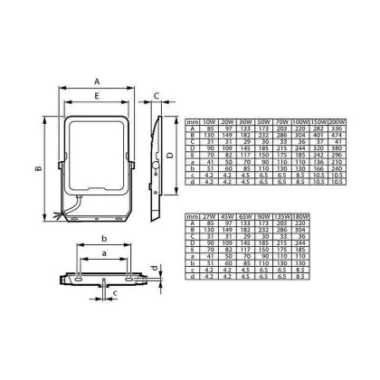 Beschrijving Voordeelpak 4x Philips LED Floodlight Ledinaire BVP167 10W 1200lm 110D - 830-840-865 CCT | IP65 - Symmetrisch